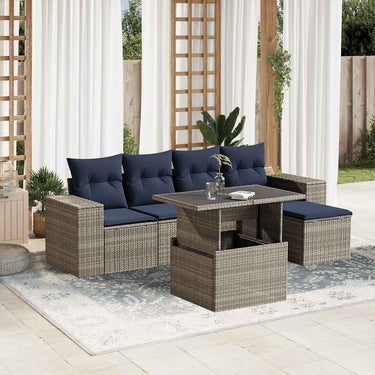 Home 6-delige tuinbankset met kussens, grijs polyrotan