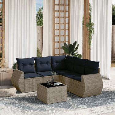 6-delige tuinbankset met kussens, grijs polyrotan