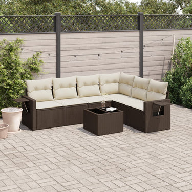 Home 7-delige Loungeset met kussens poly rattan bruin