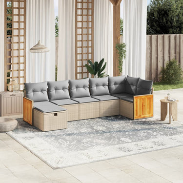 7-delige Loungeset met kussens poly rattan gemengd beige