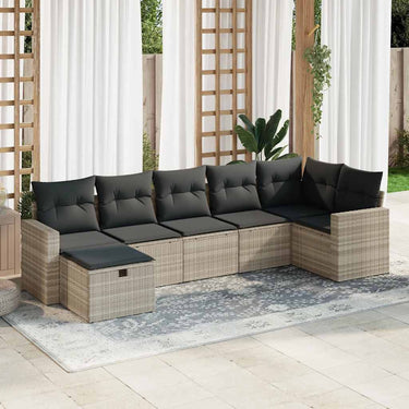 7-delige Loungeset met kussens poly rattan lichtgrijs