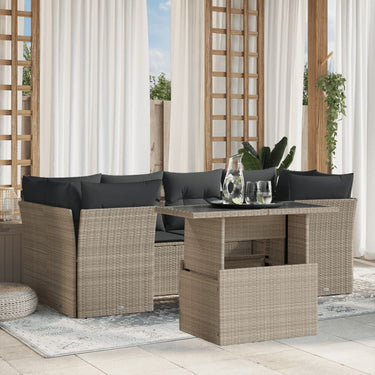 7-delige Loungeset met kussens poly rattan lichtgrijs