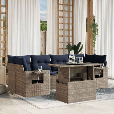 7-delige tuinbankset met kussens, grijs polyrotan