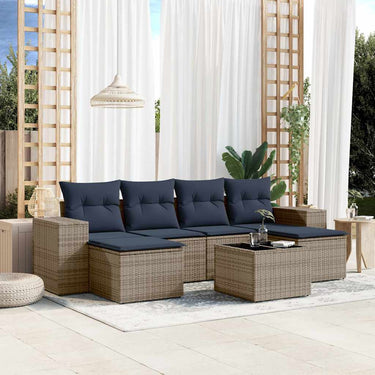 Home 7-delige tuinbankset met kussens, grijs polyrotan