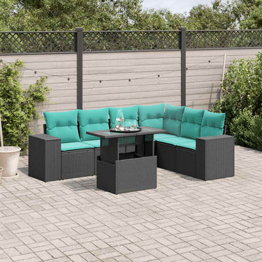 Home 7-delige tuinbankset met kussens van zwart polyrotan