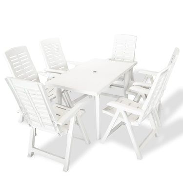 De levering bevat 1 tafel en 6 inklapbare stoelen.