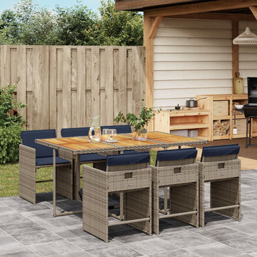 Home 7-delige tuinset met kussens, grijs polyrotan