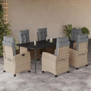 7-delige Tuinset met kussens poly rattan gemengd beige