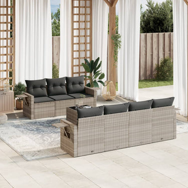 8-delige Loungeset met kussens poly rattan lichtgrijs