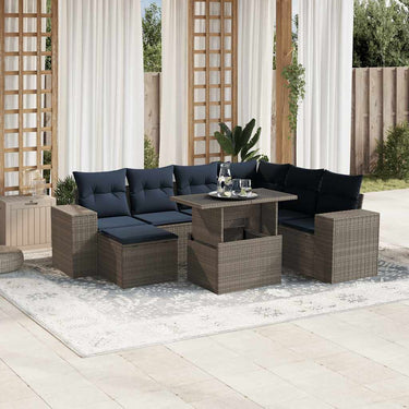 Home 8-delige tuinbankset met kussens, grijs polyrotan
