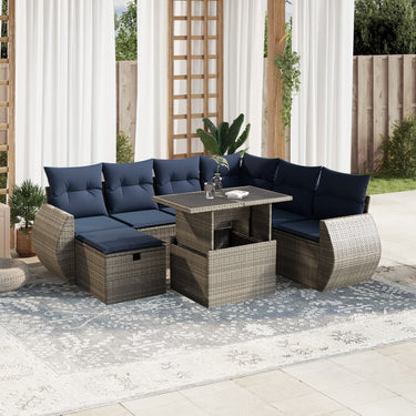 Home 8-delige tuinbankset met kussens, grijs polyrotan