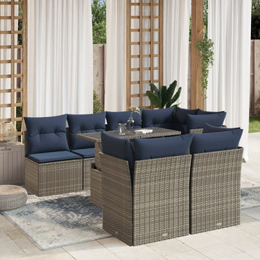 8-delige tuinbankset met kussens, grijs polyrotan