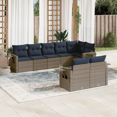 Home 8-delige tuinbankset met kussens, grijs polyrotan