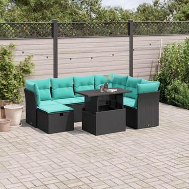 Home 8-delige tuinbankset met kussens, zwart polyrotan