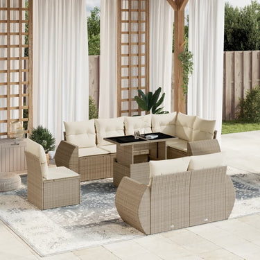 9-delige Loungeset met kussens poly rattan beige
