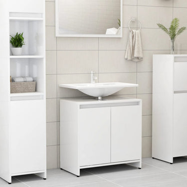 Badkamerkast 60x33x61 cm bewerkt hout hoogglans wit