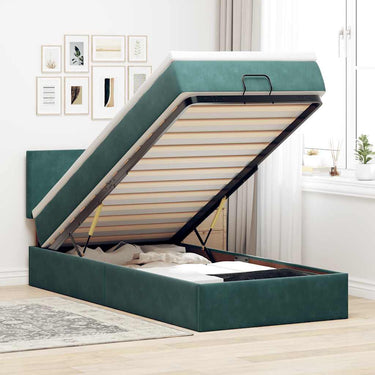 Bed poef met matras en LED's 90x200 cm fluweel donkergroen