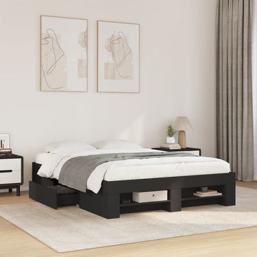Home Bedframe bewerkt hout zwart 140x190 cm
