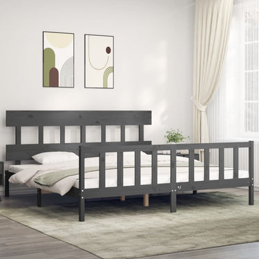 Home Bedframe met hoofdbord massief hout grijs 200x200 cm