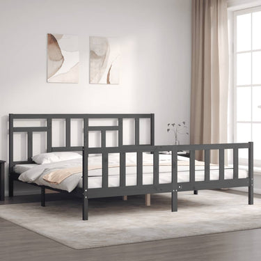 Bedframe met hoofdbord massief hout grijs 200x200 cm