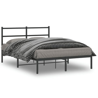 Bedframe met hoofdbord metaal zwart 135x190 cm