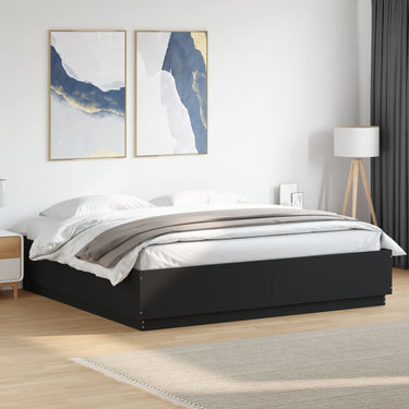 Bedframe met LED-verlichting bewerkt hout zwart 180x200 cm