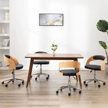 Eetkamerstoelen 4 st draaibaar gebogen hout en kunstleer zwart