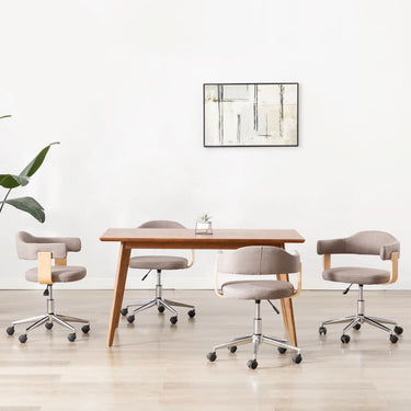 Eetkamerstoelen 4 st draaibaar gebogen hout en stof taupe