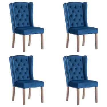 Deze eetkamerstoelen, bekleed met zacht aanvoelend fluwelen stof, bieden een comfortabele plek om te dineren, lezen of ontspannen. De decoratieve handgreep op de rugleuning en de metalen klinknagels langs de randen dragen bij aan de klassieke schoonheid van de stoel. Ze worden ondersteund door massief rubberwood poten waardoor de keukenstoelen stabiel en stevig zijn.