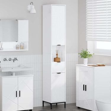 Home Hoge badkamerkast Hoogglans wit 31.5 x 33 x 190 cm Bewerkt hout