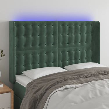 Hoofdbord LED 147x16x118/128 cm fluweel donkergroen