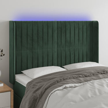 Hoofdbord LED 147x16x118/128 cm fluweel donkergroen