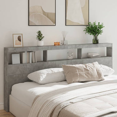 Hoofdbordkast met LED-verlichting 220x17x102 cm betongrijs