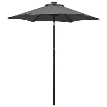 Dankzij de handslinger en het kantelbare ontwerp is de parasol inklapbaar en draagbaar. Het parasoldoek is gemaakt van uv-beschermend anti-vervagingspolyester dat je optimaal beschermt tegen de zon. De robuuste aluminium paal met poedercoating zorgt er in combinatie met 6 stevige, metalen baleinen voor dat de parasol extra stevig is en jarenlang gebruikt kan worden. Deze parasol heeft 12 LED's die je buitenruimte verlichten en een comfortabele, romantische sfeer creëren zodra de zon ondergaat.