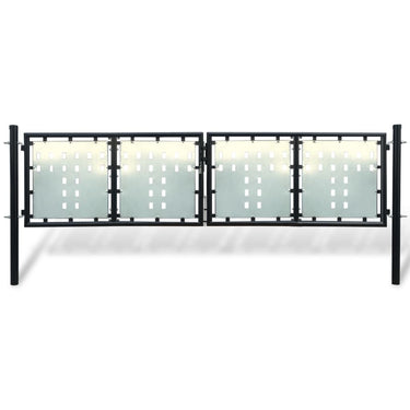 De galvaniseerde platen met decoratieve patronen versterken het frame zodat onze tuinpoort veel veiligheid biedt, terwijl hij tegelijkertijd een fantastische toegangspoort tot je terrein vormt. De poort is gemaakt van sterk gepoedercoat staal dat roest- en uv-bestendig is.