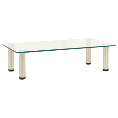 Dit televisiemeubel is gemaakt van dik gehard glas en robuust roestvrij staal, waardoor hij zeer stevig en duurzaam is. Het sterke tafelblad kan gebruikt worden voor het plaatsen van een televisie, een laptop en andere multimedia-apparaten. Je kunt ook drankjes, vazen en andere kleine voorwerpen op het meubel plaatsen. Bovendien is het gladde oppervlak eenvoudig schoon te maken met een vochtige doek.