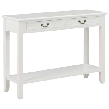 De tafel heeft een stevig MDF-blad waarop je decoratieve spullen, zoals fruitmanden en vazen, kunt plaatsen. De massief grenenhouten poten garanderen de stabiliteit en duurzaamheid. Bovendien bieden de 2 lades voldoende ruimte om allerlei kleinere spullen geordend en binnen handbereik te houden. Het schap biedt extra ruimte voor het opbergen van je schoenen en andere voorwerpen.