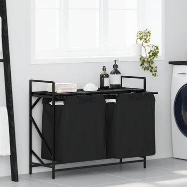 Wasmand 2 vakken met plank zwart eikenkleurig