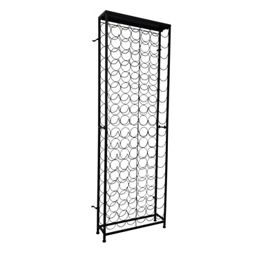 Dit staande wijnrek is een echte blikvanger. Het rek is gemaakt van smeedijzer dat volledig gepoedercoat is om roesten te voorkomen.