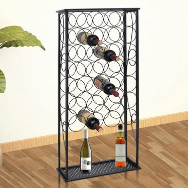 Dit staande wijnrek is een echte blikvanger! Het is gemaakt van smeedijzer en volledig gepoedercoat, hierdoor is het rek roestbestendig en zeer duurzaam!