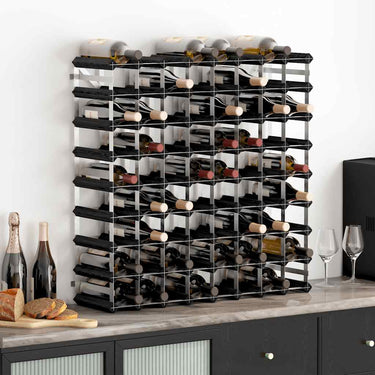 Wijnrek voor 72 flessen massief grenenhout zwart